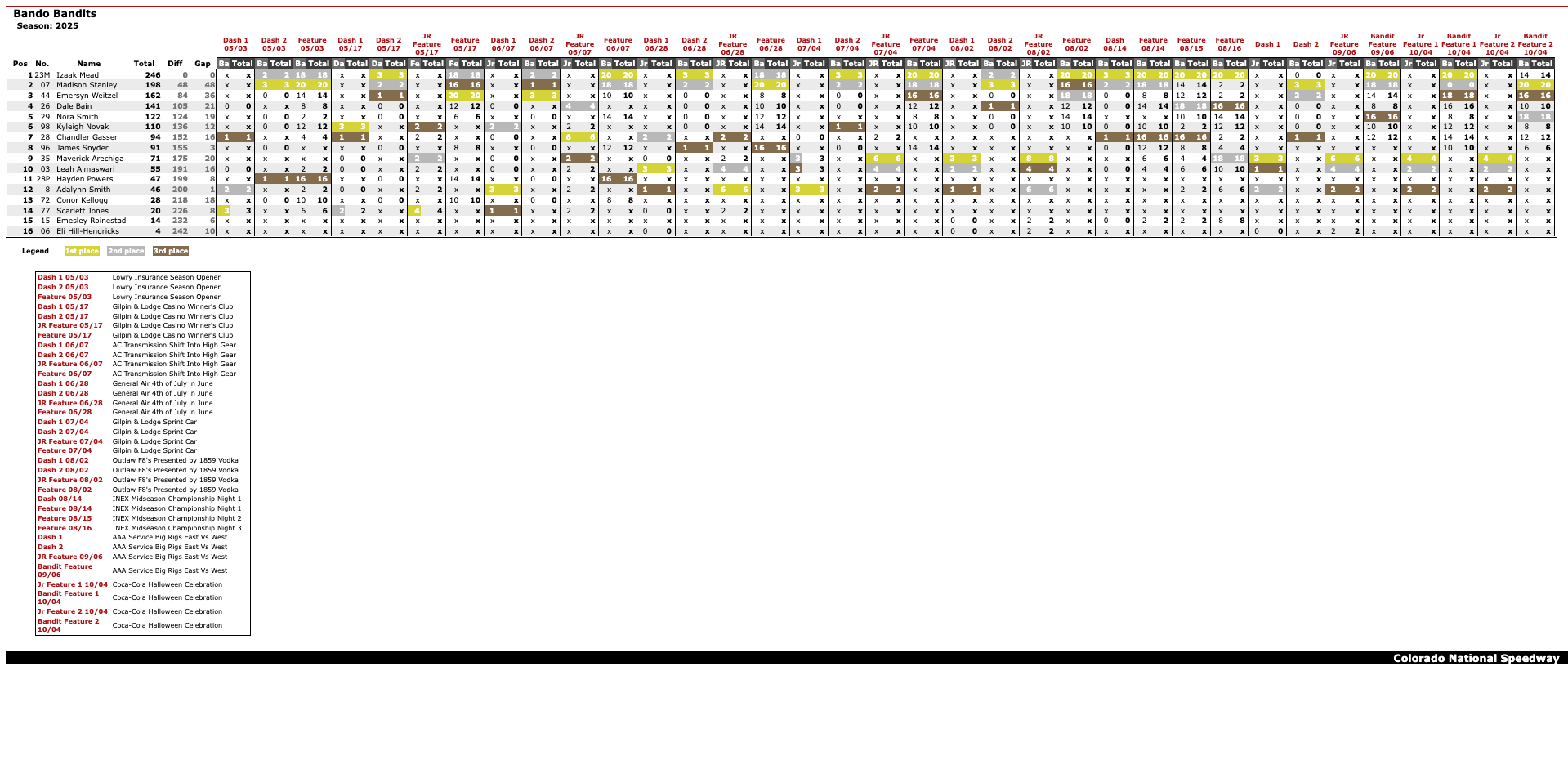 CURRENT POINT STANDINGS